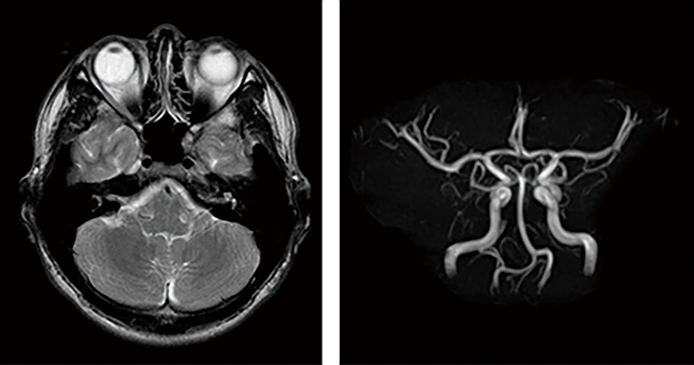 当センターの脳ドックでは、MRI(左画像)に加えてMRA(右画像)も取り入れています。MRIが得意とする脳の小さな梗塞や腫瘍のほか、くも膜下出血の原因となる脳動脈瘤や脳動脈奇形を調べることが可能となり、脳血管疾患の早期発見に強みを発揮します。